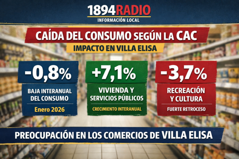 Comunidad VELa Cámara Argentina de Comercio confirmó una caída del 0,8% en el consumo y en Villa Elisa ya se sienteRadio 189425 febrero, 2026