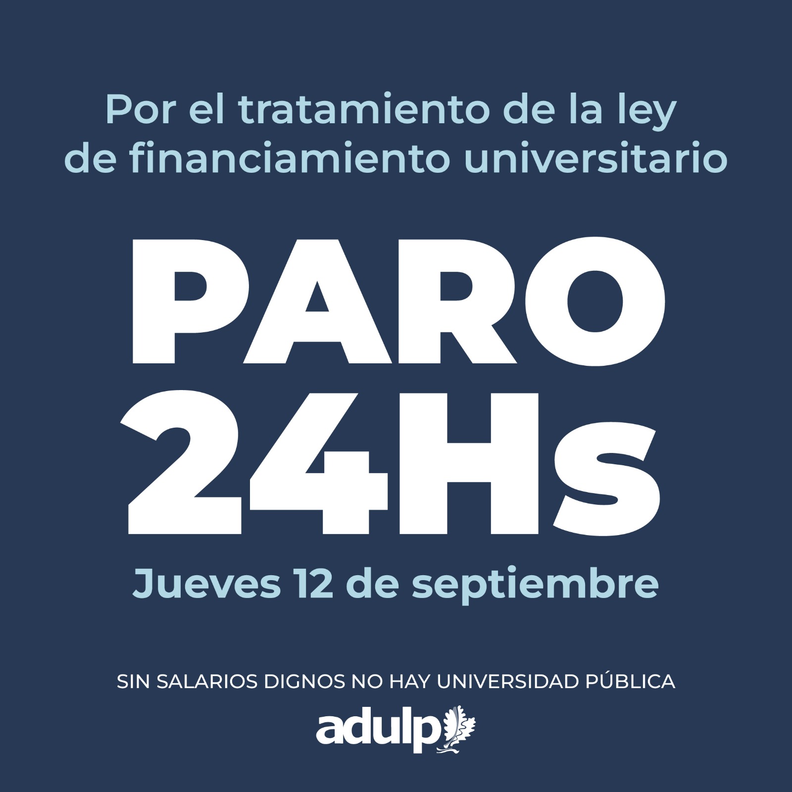Tato Miloni explicó que la organización sindical convoca al PARO por 24hs el próximo jueves, 12 de septiembre, en función de lo resuelto por las instancias administrativas de nuestro Sindicato, para exigir la aprobación de la Ley de Financiamiento Universitario.