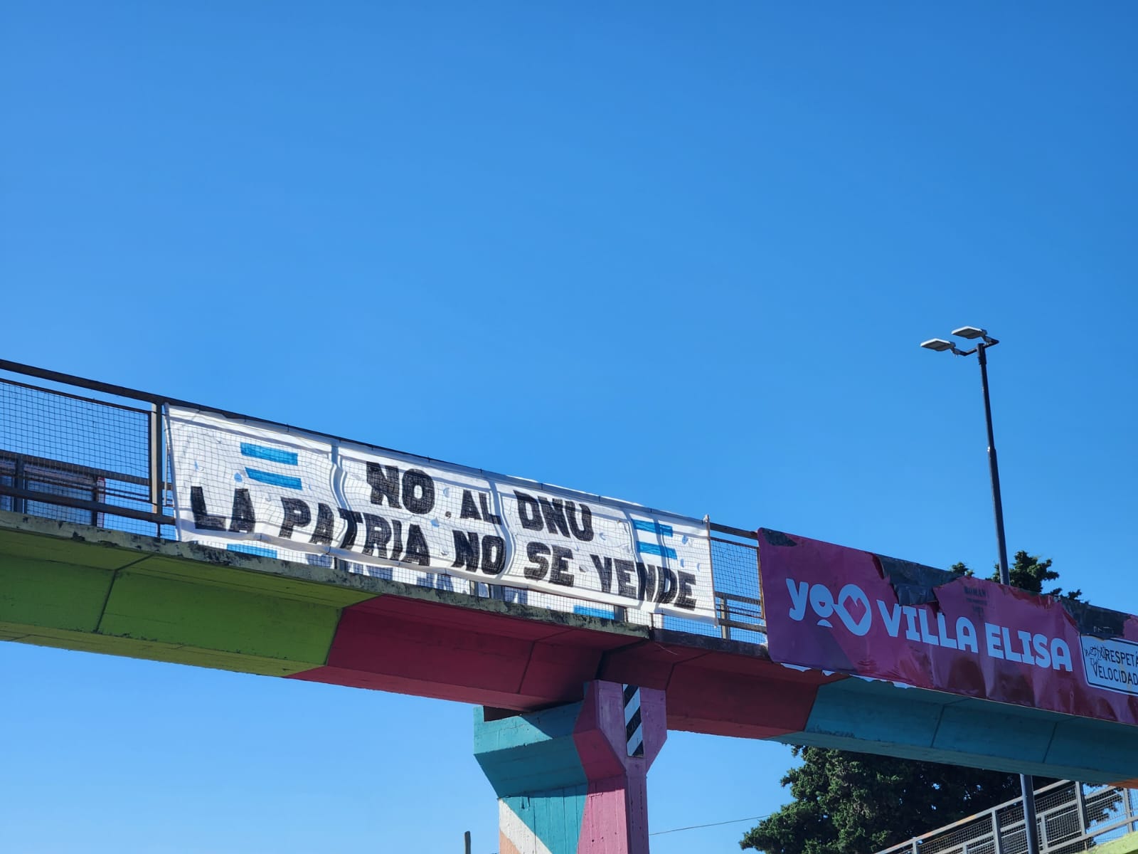 Vecinos de Villa Elisa por la Memoria, Verdad y Justicia destacan en un cartel que “La Patria no se vende”.